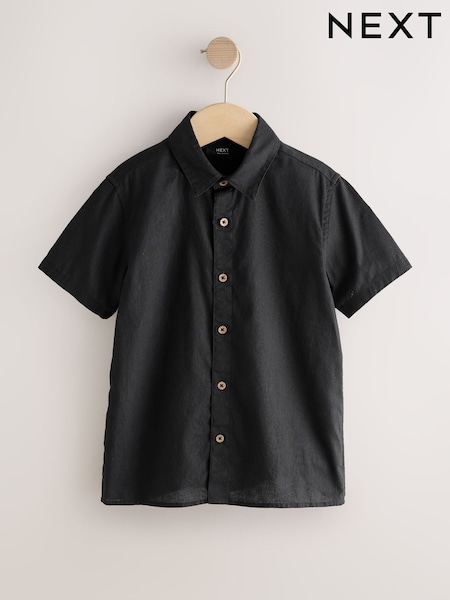 Black Short Sleeve Linen Blend Shirt (3-16yrs)