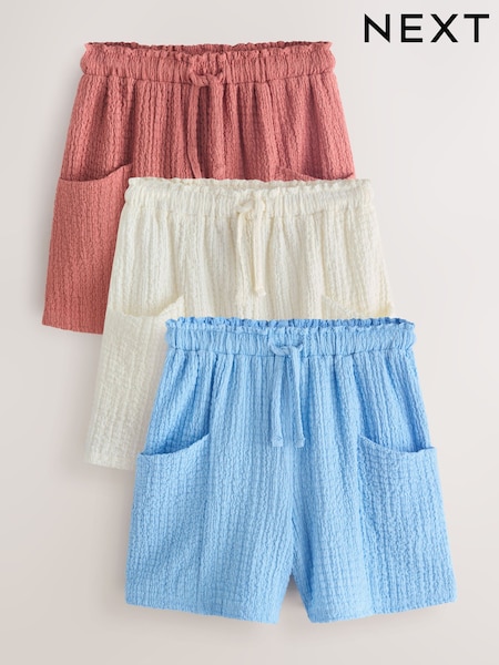 Rust/Cream/Blue Crinkle Shorts 3 Pack (3-16yrs)