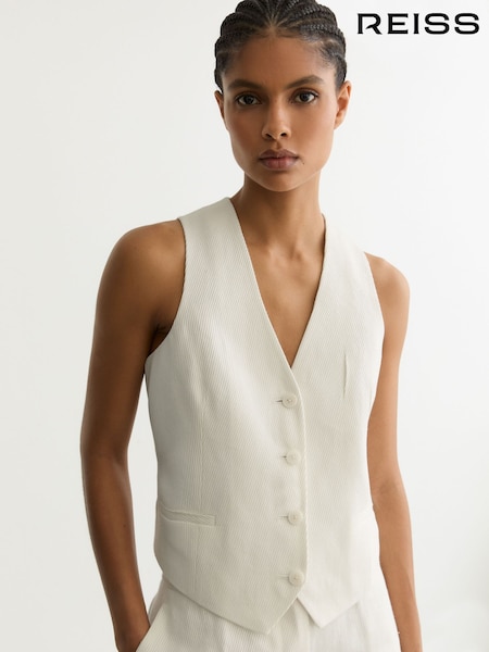 Reiss White Alyx Linen-Blend Single-Breasted Suit Jacket
