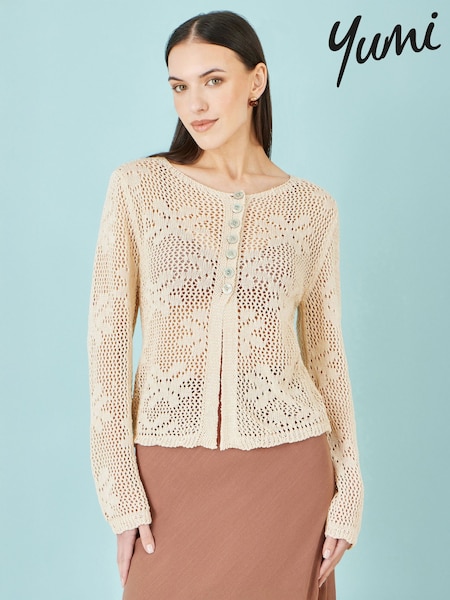 Yumi Natural Flower Crochet Button Up Cardigan