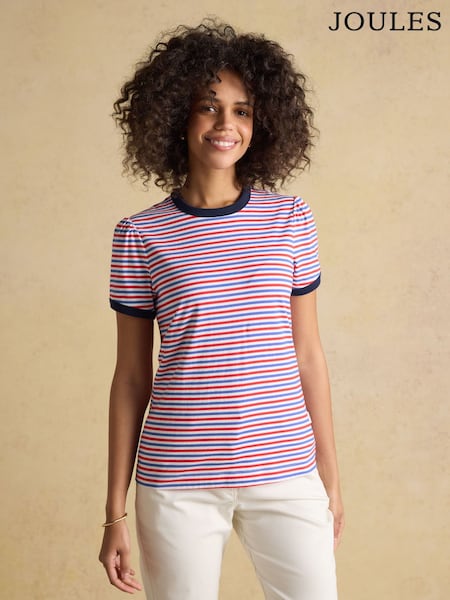 Joules Erin Blue Red Stripe Short Sleeve Jersey T-Shirt