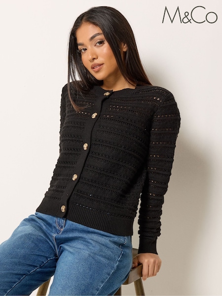 M&Co Black Pointelle Edge To Edge Cardigan