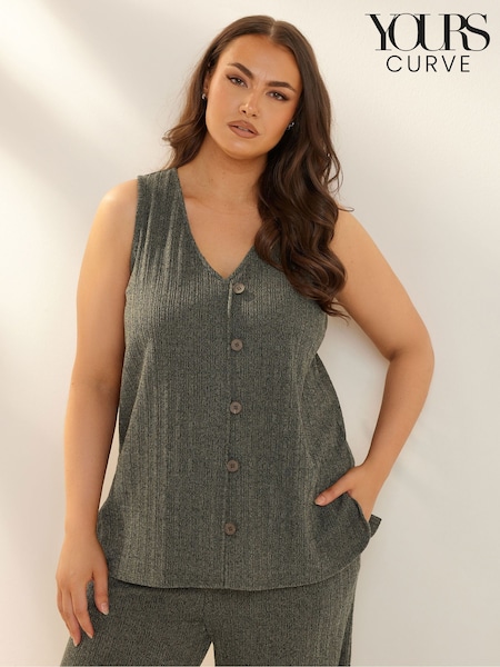 Yours Curve Green Textured Button Front Waistcoat