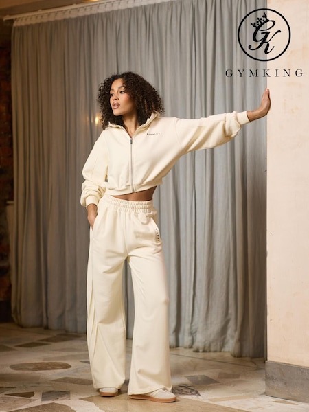 Gym King White Replenish Peached Wide Seam Joggers