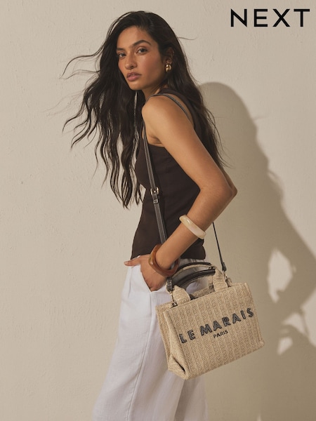 Neutral Raffia Effect Cross-Body Bag