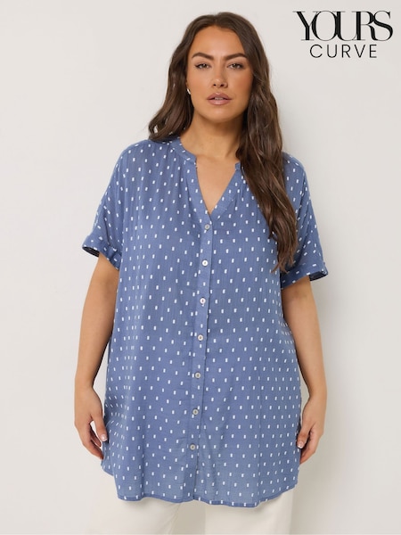 Yours Curve Denim Blue Dobby Notchneck Blouse