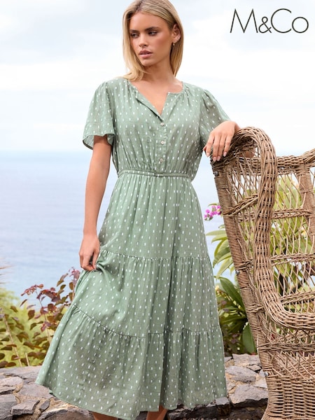 M&Co Green Petite Dobby Tiered Maxi Dress