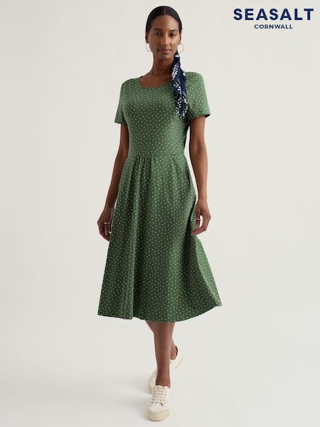 M&Co Green Dobby Sleeveless Tiered Midi Dress
