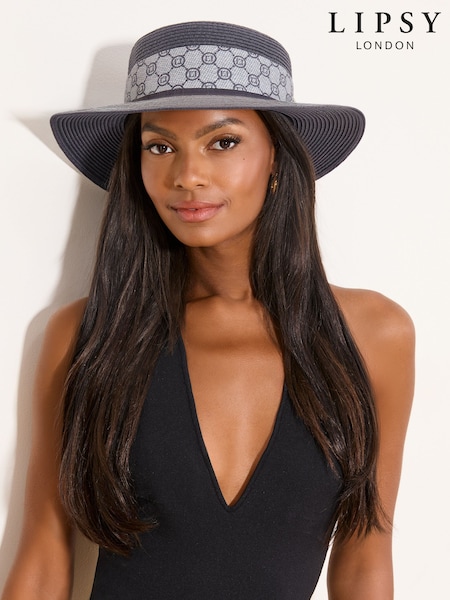 Lipsy Navy Faux Raffia Straw Monogram Hat
