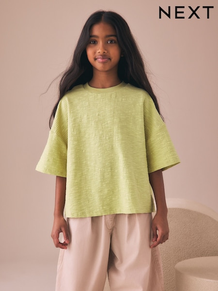 Green Textured Oversized Boxy T-Shirt (3-16yrs)