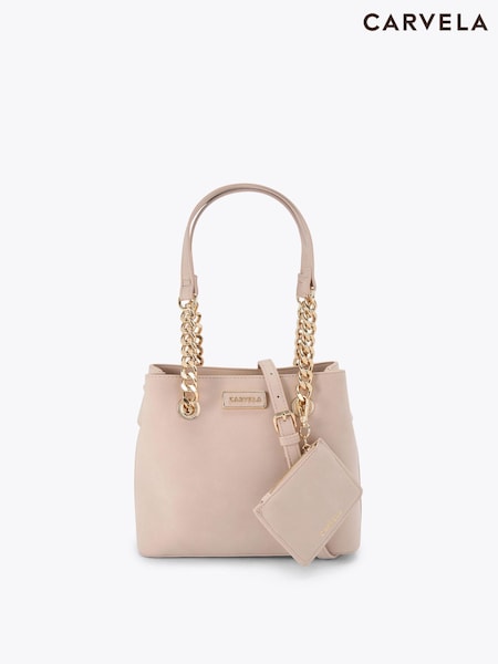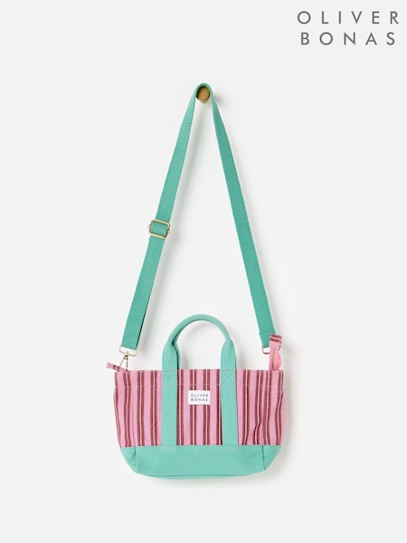 Oliver Bonas Pink Striped Logo Fabric Mini Tote Cross-Body Bag