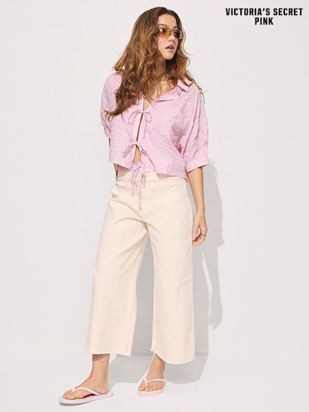 Victoria's Secret Pink Dollhouse Pink Cotton Tie Front Pyjama Top