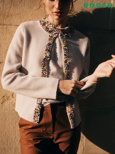 Boden Brown Embellished Crop Cardigan