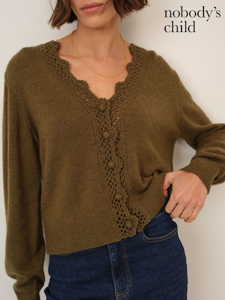 Nobodys Child Green Crochet Trim V-Neck Cardigan