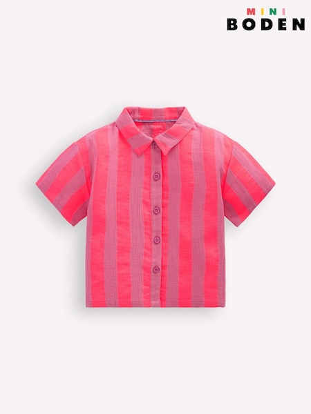 Reiss Coral Pink Cleo 3-9 yrs Cotton-Linen Puff-Sleeve Shirt