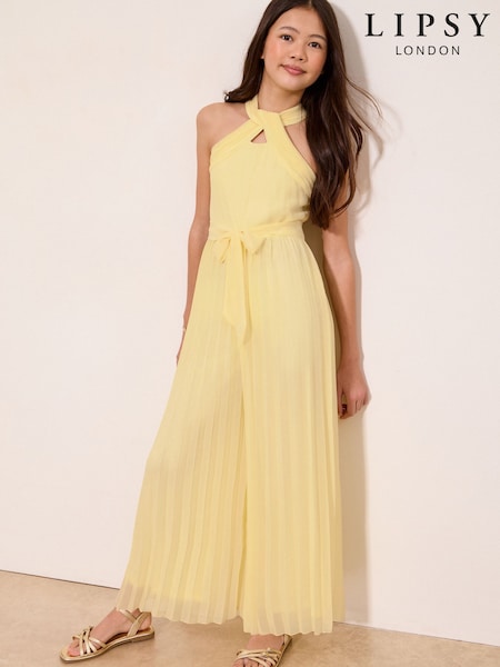 Lipsy Yellow Twist Halter Occasion Jumpsuit (7-16yrs)