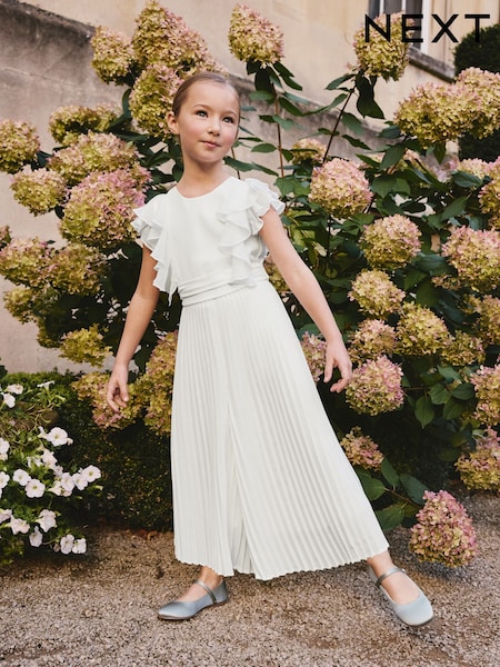 White Pleated Ruffle Flower Girl Jumpsuit (6-13yrs)