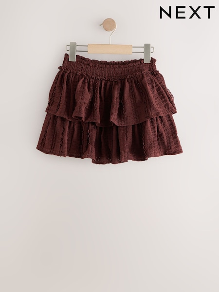 Chocolate Brown Crinkle Tiered Skirt (3-16yrs)