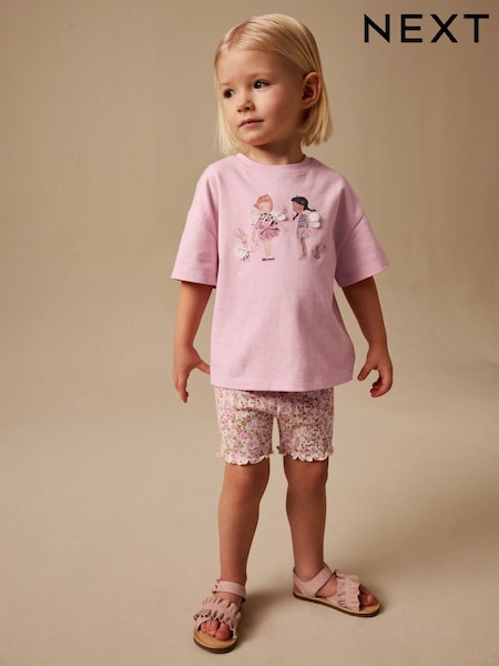 Pink/Brown Oversized T-Shirt and Cycling Shorts Set 2 Pack (3-16yrs)