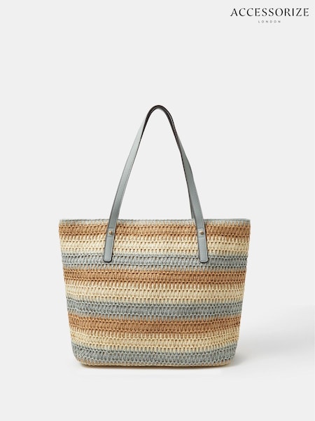 Accessorize Grey Stripe Raffia Shoulder Bag
