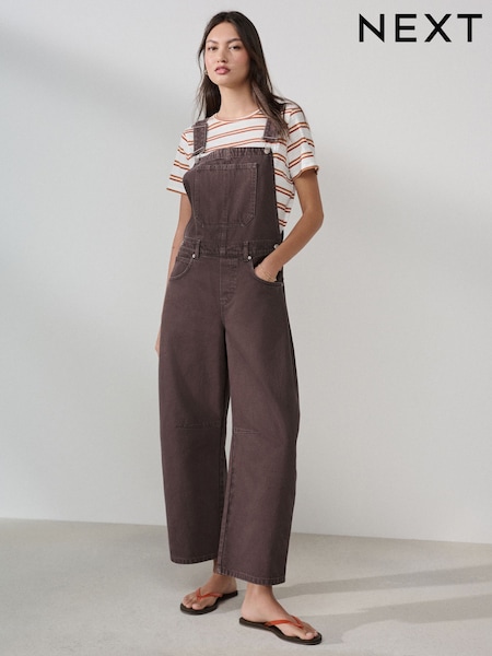 Chocolate Brown Denim Barrel Dungaree Jumpsuit