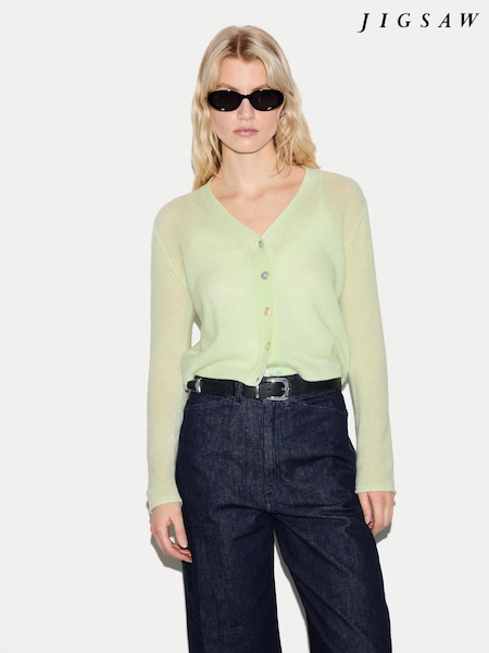 Jigsaw Green Merino Cashmere V-Neck Cardigan
