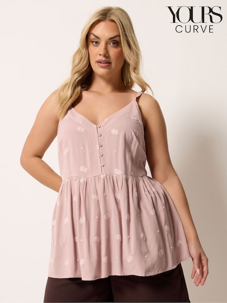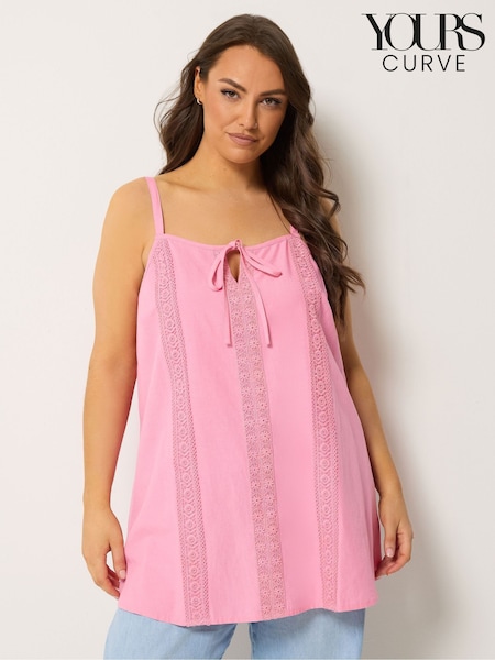 Yours Curve Pink Floral Shirred Tie Sleeve Cami Top