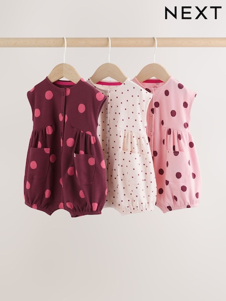 Brown and Pink Polka Dot Button Through Baby Rompers 3 Pack