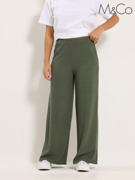 Olive Green Maternity Textured Wide Leg Trousers with Linen