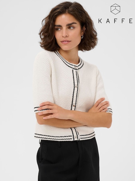 Kaffe White KAcoco Knitted Stitch Detail Cardigan