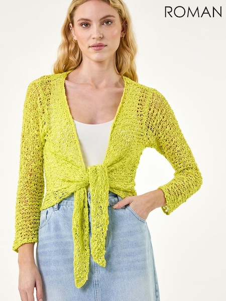 Roman Green Waterfall Popcorn Knitted Cardigan