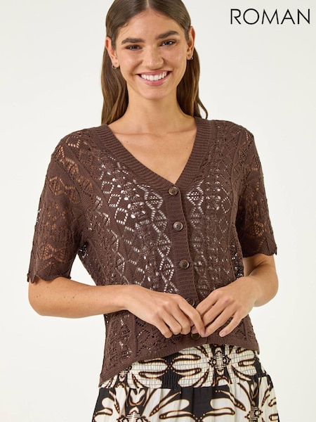 Roman Brown Stitch Detail V-Neck Knit Cardigan