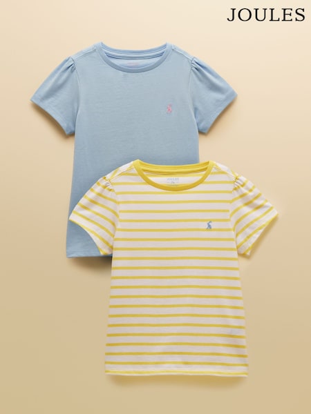 Joules Girls' Let's Go Blue & Yellow Short Sleeve T-Shirts 2 Pack
