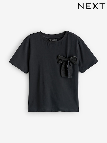 Black Short Sleeve Round Neck 3D Bow T-Shirt