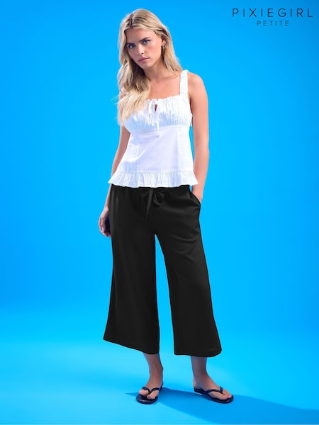 PixieGirl Petite Black Cropped Belted Wide Leg Trousers