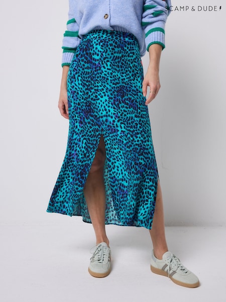 SCAMP & DUDE Blue Leopard Ray Split Front Skirt