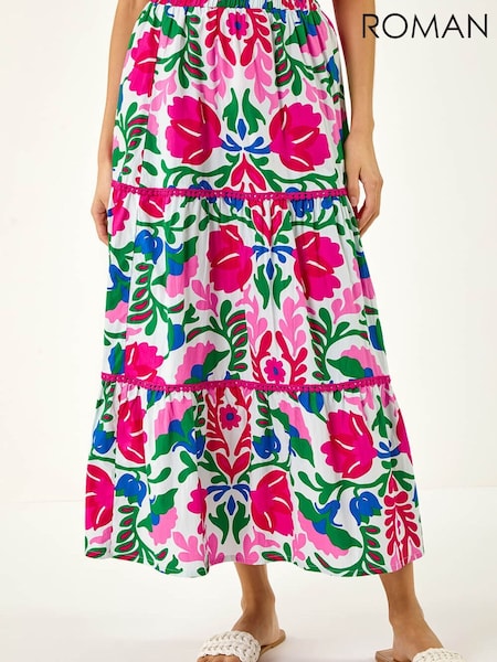 Roman Pink Floral Print Tiered Skirt