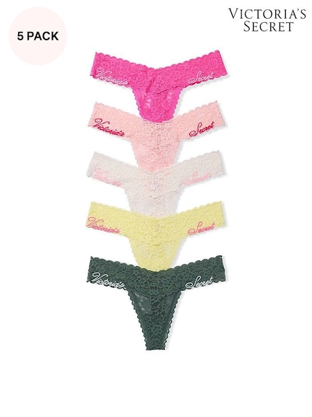 Victoria's Secret Pink/White/Yellow/Green Thong Knickers 5 Pack