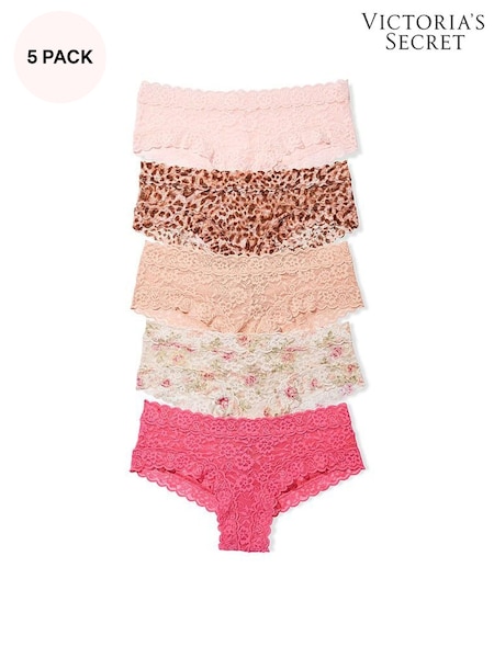 Victoria's Secret Pink/Nude/Leopard Cheeky Knickers 5 Pack
