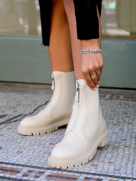 Novo Cream Dove Wide Fit Darlina Flat Chelsea Ankle Boots