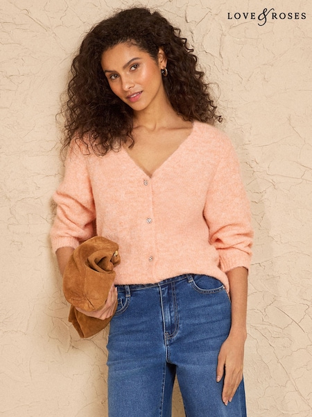 Love & Roses Peach Pink 3/4 Sleeve Cosy Knitted Cardigan