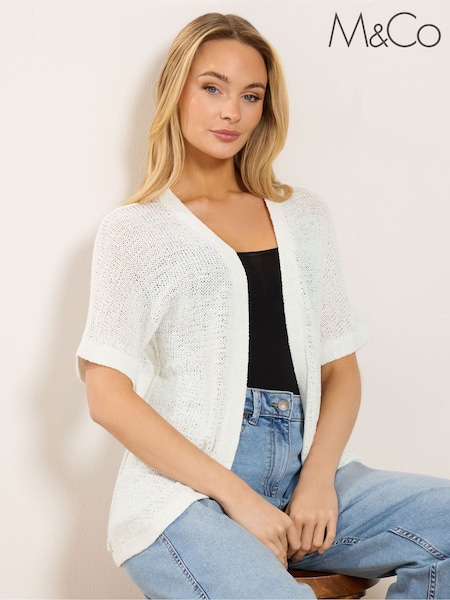 Sosandar White Textured Knit Gold Button Detail Cardigan