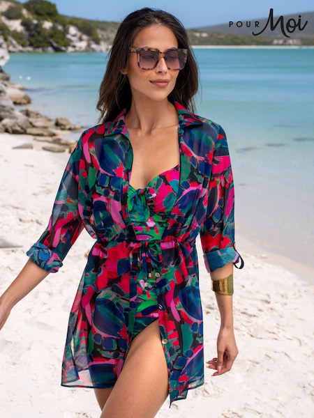 Pour Moi Black Chiffon Button Through Beach Coverup
