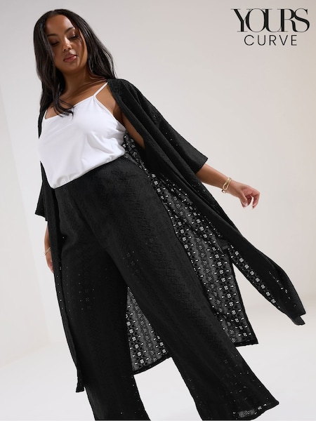 Yours Curve Black Broderie Anglaise Kimono