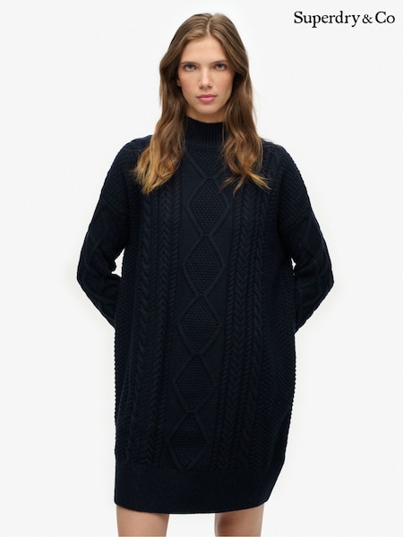 Superdry Blue Slouchy Cable Knit Dress