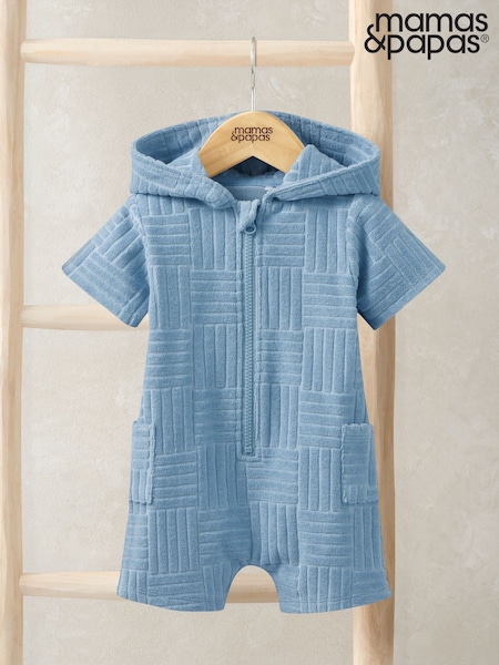 Mamas & Papas Blue Textured Towelling Zip Romper