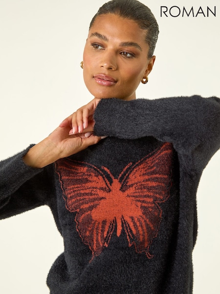 Roman Black Stripe Zip Front Ribbed Knit Jumper