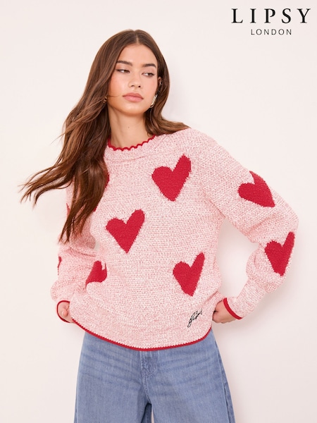 Lipsy Red Heart Pattern Stitchy Embroidered Knit Jumper