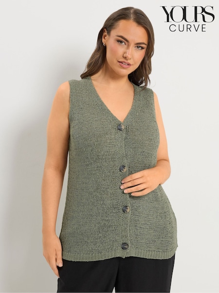 Yours Curve Green Button Through Knitted Waistcoat