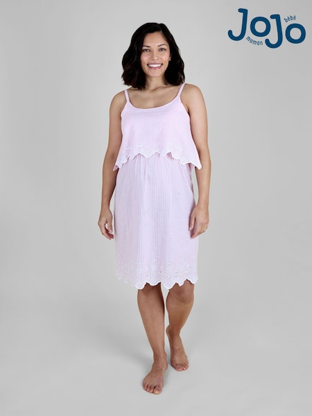 JoJo Maman Bébé Pink Ticking Stripe Maternity & Nursing Nightdress